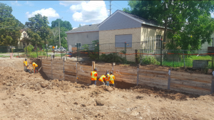 Shoring is a form of temporary support that is used during the construction of buildings and during excavation. It’s only temporary because it provides relief for a short period of time in order for new construction to be effective.